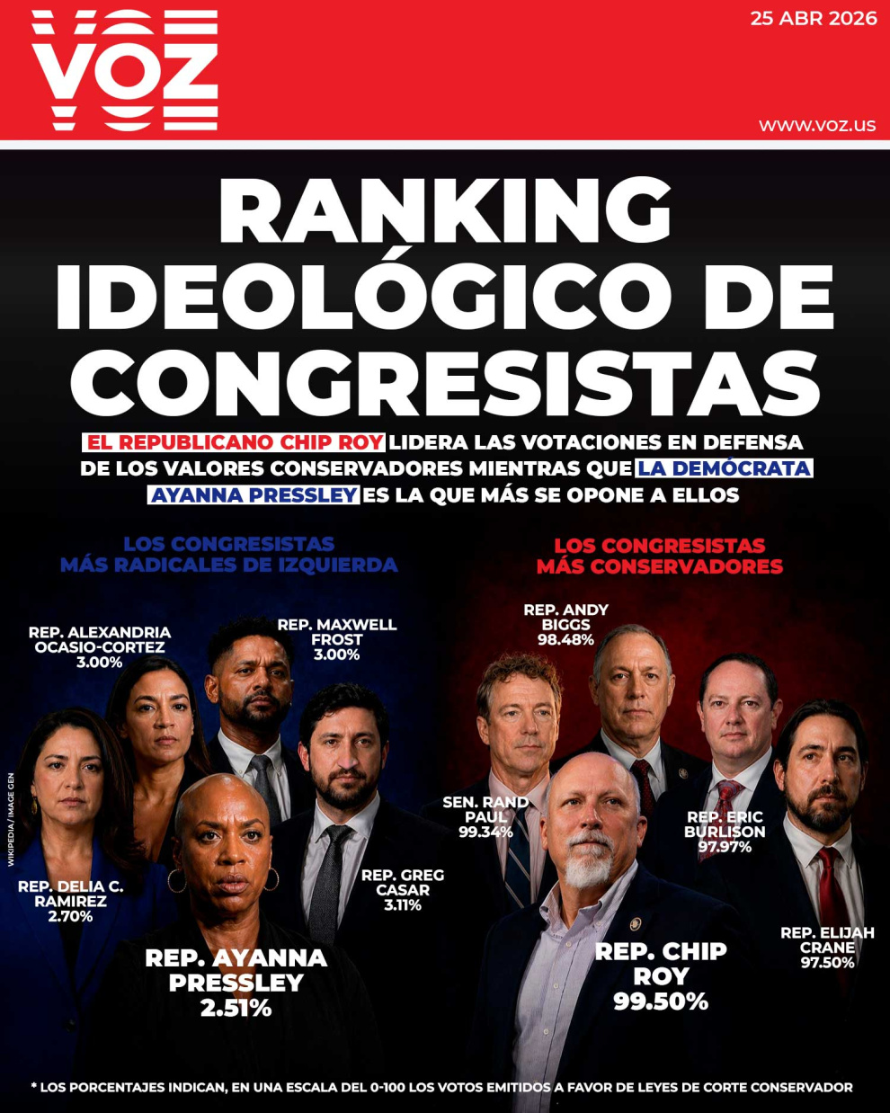 Un estudio de los votos de los representantes y senadores entre 2023 y 2025 del Institute for Legislative Analysis permite comprobar la tendencia de cada uno de los legisladores.
