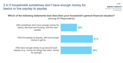 Two out of 5 families surveyed stated that they did not have enough money or were living paycheck to paycheck.