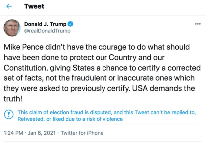 While the vice president hid with the secret service from those who stormed the Capitol, Trump posted a tweet that would be the beginning of the end in the relationship. "Mike Pence did not have the courage to do what should have been done to protect our country and our Constitution.The United States is demanding the truth!" he wrote.