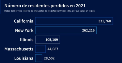 The ranking of states that lost the most residents was led by California. Governed by Gavin Newsom since 2019, the Golden State was abandoned by 331,760 people in 2021, resulting in a loss of $29 billion. Second place went to New York, which lost 262,216 inhabitants in the same time period and 24 billion in the process.