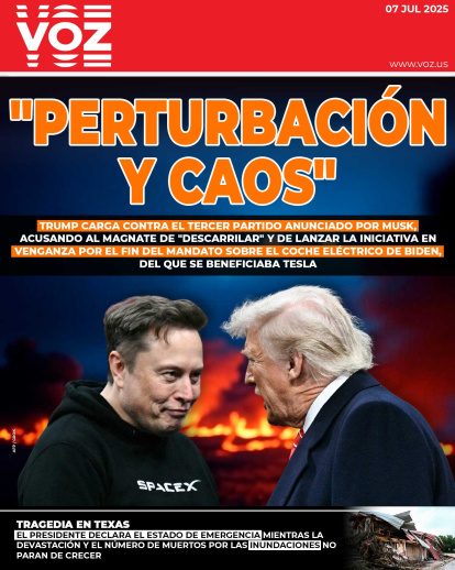 Portadas Portada 07 de julio 2025 Facebook Twitter Whatsapp Whatsapp Copiar enlace Publicado por 7 de julio, 2025 En: cover x LO ÚLTIMO La progresista Jasmine Crockett presentó su candidatura al Senado en Texas para 2026 La Administración Trump elimina la multa de $11 millones que Southwest heredaba de la era Biden Japón lanza una alerta por Tsunami tras un terremoto de magnitud 7,6 en el Pacífico Paramount trata de adelantarse a Netflix y lanza una potente oferta pública de adquisición por Warner "Una Norma": Trump anuncia una orden ejecutiva para unificar la legislación sobre la inteligencia artificial Portada 08 de diciembre 2025 Los Thunder alcanzan su 15ª victoria consecutiva el día que LeBron volvió a ser decisivo para los Lakers La mejor defensa de la NFL asfixia a Mahomes y Kelce y deja a los Chiefs al borde del desastre