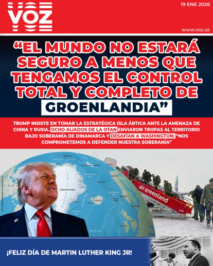 Portadas Portada 19 de enero 2025 Facebook Twitter Whatsapp Whatsapp Google Discover Copiar enlace Publicado por 19 de enero, 2026 En: cover x LO ÚLTIMO El frío extremo y las intensas nevadas marcarán el tiempo esta semana Tragedia ferroviaria en España: el número de muertos se eleva a 39, y se cuentan más de 100 heridos Trump insiste en la toma de Groenlandia mientras Europa baraja respuestas: "El mundo no estará seguro a menos que tengamos el control total y completo" Todo lo que hay que saber del Día de Martin Luther King Jr. Portada 19 de enero 2025 NBA: los Hornets sorprenden con una paliza a los Nuggets, los Bulls llegan a 20 triunfos China: la tasa de natalidad se desploma a un nivel récord en 2025 Super Bowl LX: así quedan las finales de conferencia tras los triunfos de los Patriots y los Rams